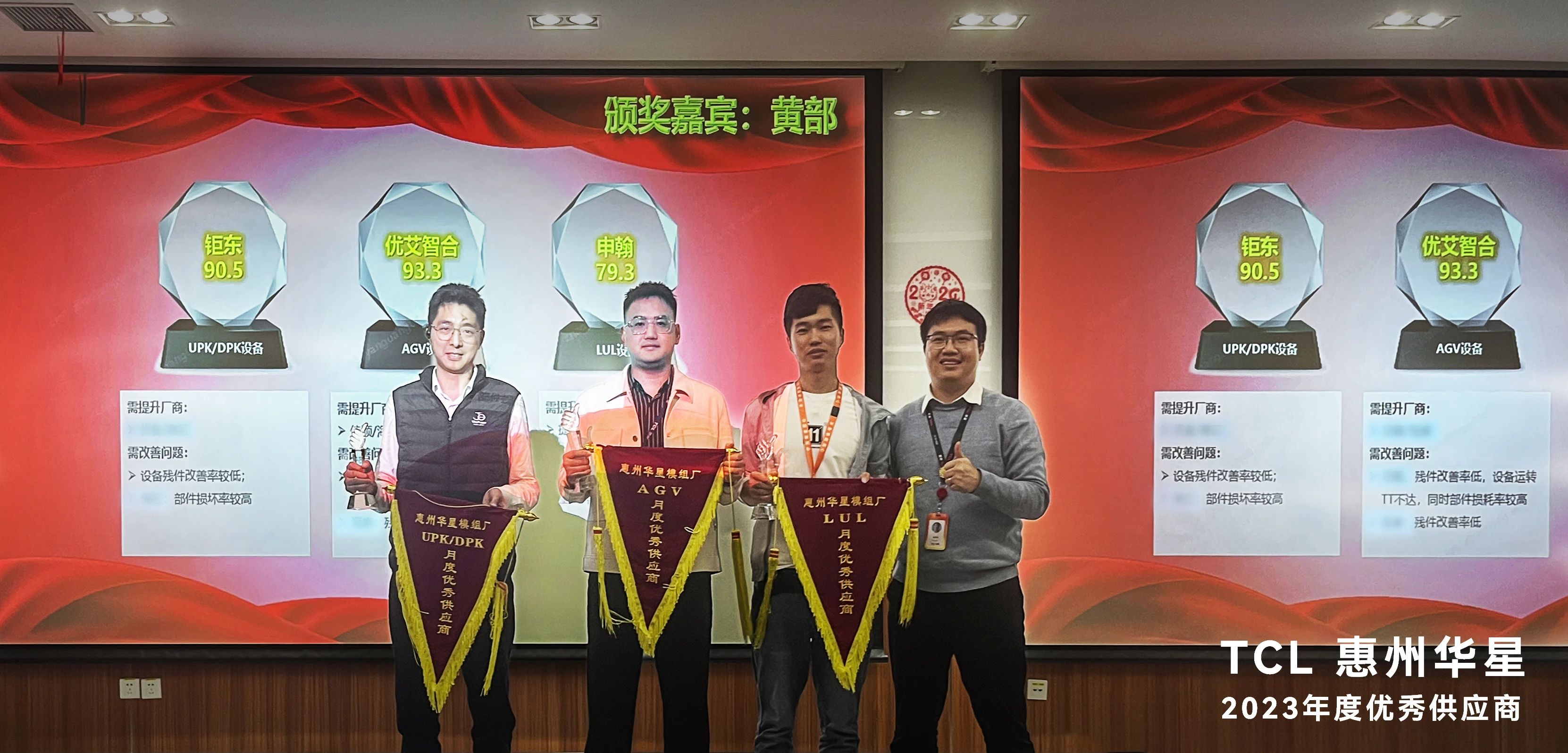近日,在TCL惠州华星年度供应商评选中,优艾智合以93.3的最高分数脱颖而出,获评“2023年度优秀供应商”!