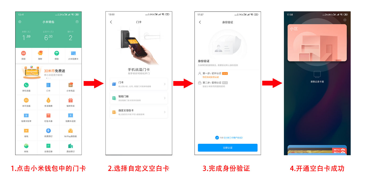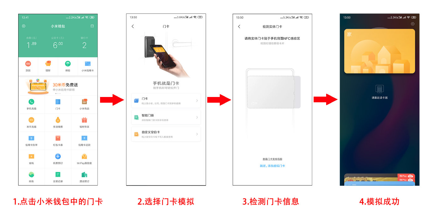 至于添加虚拟门卡的功能是为了解决无法模拟加密卡的问题。当小区使用的是加密门卡时,可以先在小米钱包里面开通一张空白卡,然后去小区物业写入加密数据,就可以在手机上支持加密门卡了。