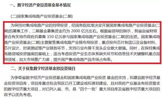值得一提的是,今年5月,杭州发布了《关于征集浙江省数字经济产业投资基金项目的通知》。该通知显示,浙江将由省财政联合有关地市政府共募集150亿元参与国家集成电路产业投资基金(二期)的出资。