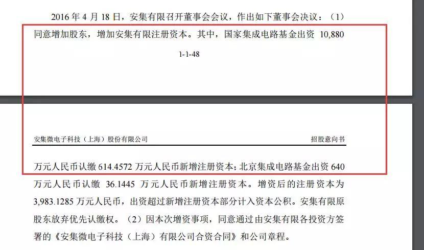 安集科技招股书显示,2016年7月,“大基金”与北京集成电路基金对安集有限增资,增资价格均为17.71元/1元注册资本,增资价格以对安集有限的评估价值为依据,本次增资前安集有限的评估价值为5.88亿元。