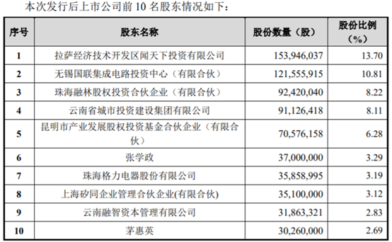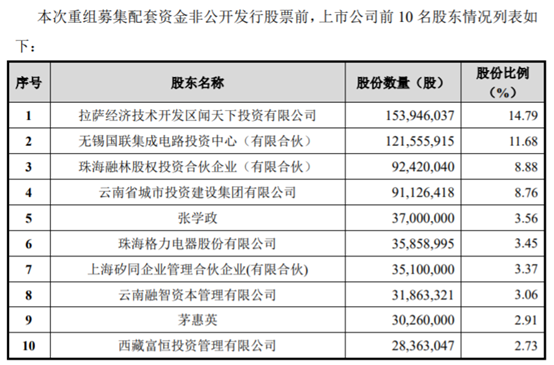 本次重组募集配套资金非公开发行股票前,闻泰科技前10名股东情况列表如下: