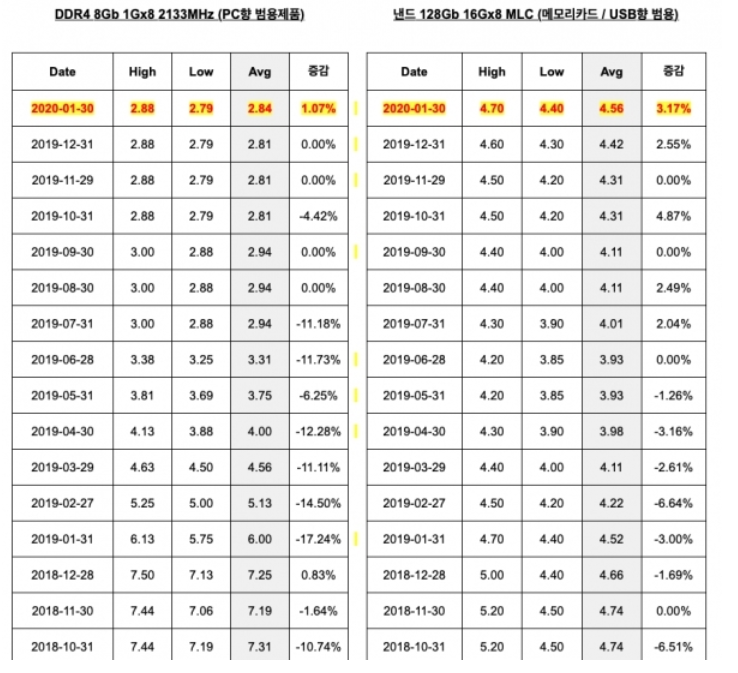 不过,DRAMeXchange称,1月的成交价订立的较早,厂商们并未受到新冠肺炎疫情影响,未来两到三个月就不好说了。(校对/holly)