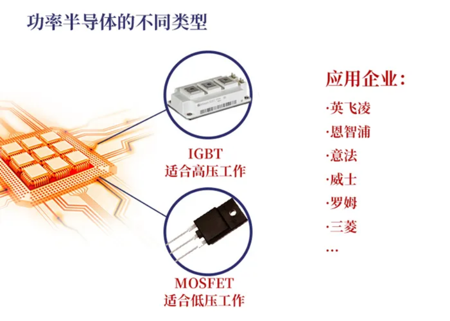 无论是纯电动还是插电式混合动力汽车,电机控制系统都扮演着动力心脏的作用,电控系统的核心部件就是功率半导体,目前市场上销售的新能源汽车所搭载的功率半导体多数为硅基器件,如 IGBT 和 MOSFET。
