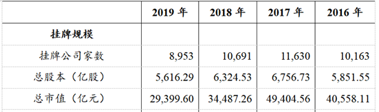 以下为2016年至2019年新三板挂牌公司数量: