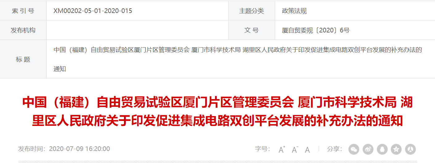 近日,厦门自贸区出台《促进集成电路双创平台发展的补充办法》(以下简称《补充办法》),给予企业第三方IC设计平台使用补助、测试认证补助和首次晶圆量产补助。