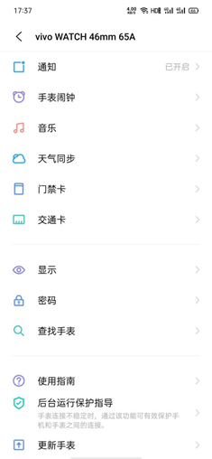 vivo WATCH还支持手机音乐播放控制。手机播放音乐之后,打开 vivo WATCH 的「音乐」功能,点击右下角的「手表图标」切换至「手机图标」,就能手表控制手机播放音乐,支持调节音量、暂停/播放、上一首/下一首等操作。支持 i音乐、网易云音乐、QQ 音乐、酷狗音乐、酷我音乐和虾米音乐,苹果手机不支持。