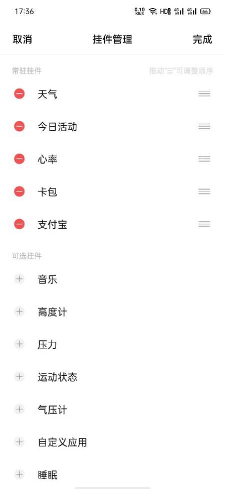 vivo WATCH表盘上的快捷功能挂件最多可以设置4个,有日期、当前海拔、当前气压、当前气温、当前天气现象、空气质量、今日活动、步数、站立、热量、运动时间、心率、压力、呼吸、运动、运动状态和电量17个快捷功能挂件可选。