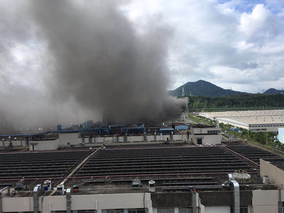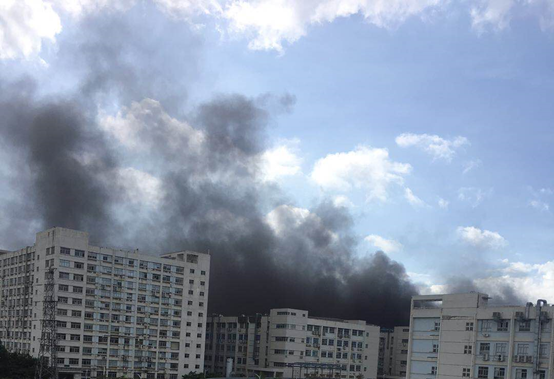 6月20日上午,深圳坪山区龙坪路比亚迪厂区内有厂房起火,厂房上空黑烟滚滚,几公里外清晰可见。