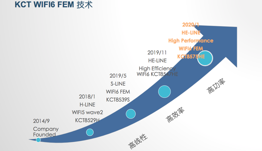 为顺应WIFI 6规模化商用元年的市场应用需求,此次发布会上康希通信正式推出第三代WIFI6 FEM芯片- KCT8547HE,此款芯片采用创新的设计方式,兼顾高效率、高线性、稳定性、可靠性和一致性于一体的射频PA/FEM芯片,已经得到多家国内外WIFI6 ODM厂商的认可和应用。