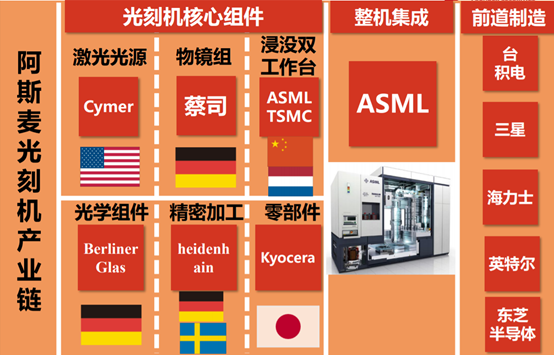 打造上下游利益共同体。阿斯麦通过并购供应商、吸收客户入股的方式打通了上下游产业链,形成一个稳定的利益共同体。在供应商方面,阿斯麦通过战略并购Cymer等企业快速打通了上游供应链,攫取了光源、镜头等光刻机零件领先的技术,进一步促进公司核心技术的创新。台积电等下游客户入股使得阿斯麦与客户结成紧密的利益共同体,客户因此能够获得优先的供货权,阿斯麦也能够获得更稳定的订单来源。上海微电子目前也已经和产业链上下游多个企业签订战略合作协议及购销合同,比如早在2015年7月上海微电子就与华卓精科签署了关于光刻机双工件台业务总金额达1.2亿元的采购合同,通过与产业链企业的深度合作,有望加速光刻机的国产替代进程。