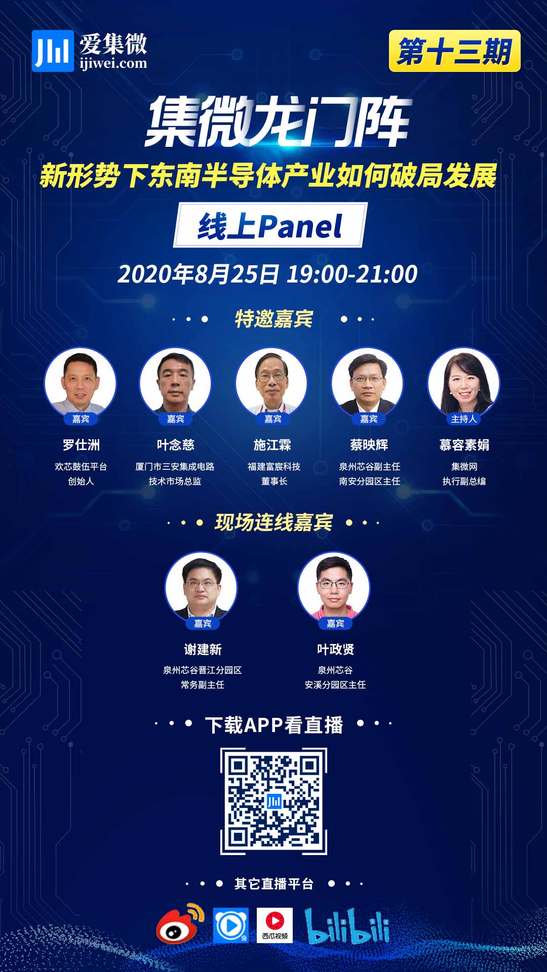 新形势下,如何加快东南区域半导体产业生态圈建设?从“0”到“1”,泉州芯谷如何脱颖而出?在招商引资方面有哪些有力举措?对未来产业发展的展望与建议?集微网第十三期“集微龙门阵”将于2020年8月25日(周二)19点以线上论坛形式召开,主题为“新形势下,东南半导体产业如何破局发展”,围绕上述热点话题展开线上探讨交流。