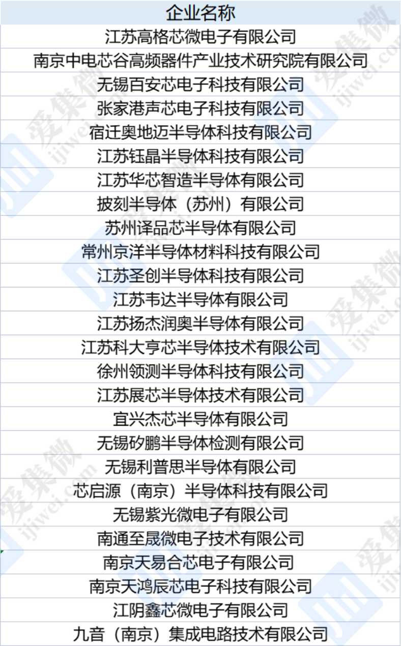 7266家企业中有不少集成电路及相关企业,包括芯启源(南京)半导体科技有限公司、南京天易合芯电子有限公司、南通至晟微电子技术有限公司、无锡利普思半导体有限公司、无锡紫光微电子有限公司、江苏韦达半导体有限公司等。