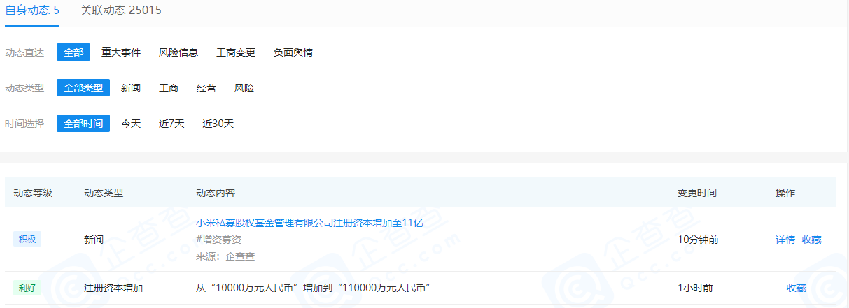 1.增幅1000%!小米私募股权基金管理有限公司注册资本增至11亿元