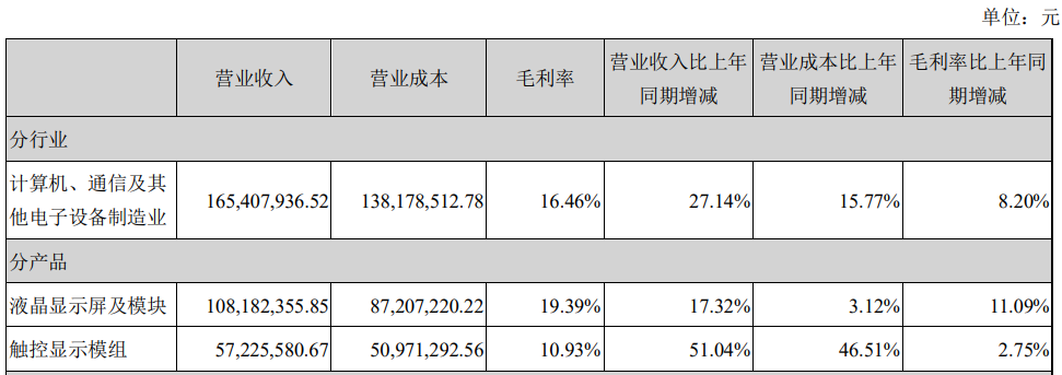 宇顺电子触控显示模组业务实现营收5722.58万元,比上年同期增加51.04%,呈现出快速增长的趋势,毛利率也提升至10.93%。