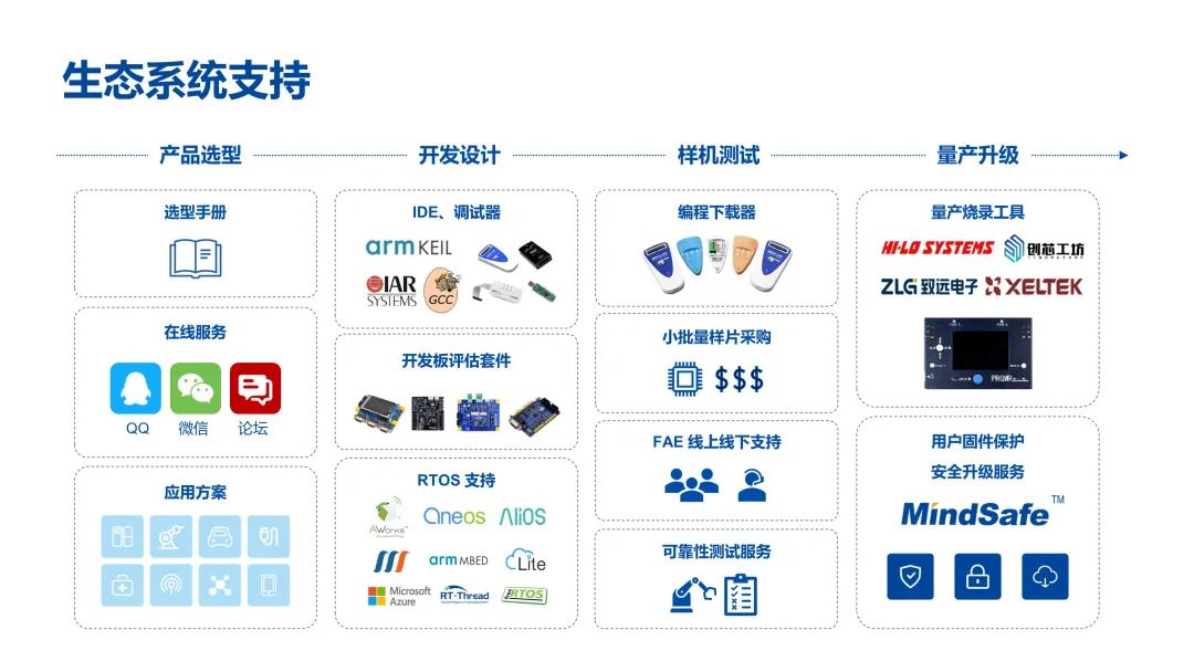 灵动客户涵盖智能工业、汽车电子、通信基建、医疗健康、智慧家电、物联网、个人设备、手机和电脑等应用领域。灵动微电子是中国为数不多的同时获得了 Arm-KEIL、IAR、SEGGER 官方支持的本土 MCU 公司,并建立了独立、完整的通用 MCU 生态体系,可以为客户提供从硬件芯片到软件算法、从参考方案到系统设计的全方位支持。