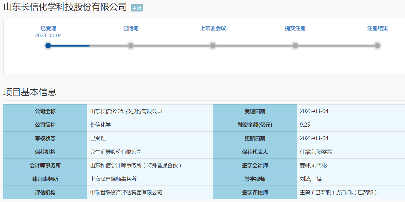 3月4日,上交所正式受理了山东长信化学科技股份有限公司(以下简称“长信化学”)主板IPO上市申请。