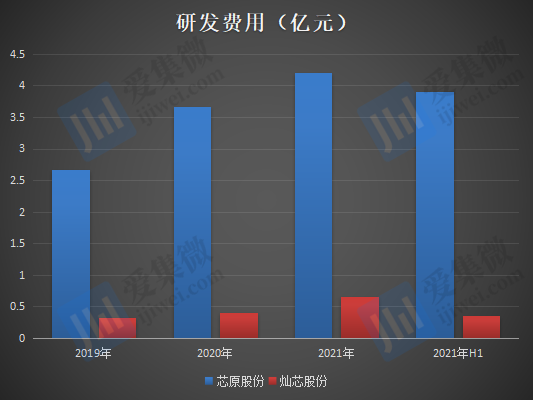 而灿芯股份期间的研发金额为0.32亿元、0.39亿元、0.65亿元、0.35亿元,对比芯原股份科技看出,几乎只有后者的九分之一!