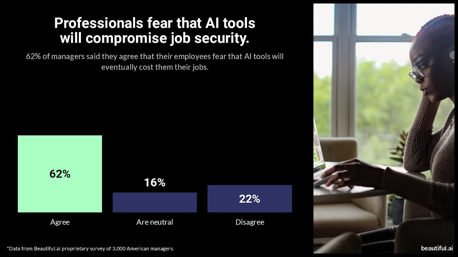 上个月,Beautiful.ai 公司(该公司开发人工智能演示软件)也进行了一项类似的调查,询问了 3000 多名经理。调查发现,近一半的参与者表示,他们希望 人工智能能在2024年用更便宜的人工智能工具取代员工。大多数受访者表示,他们认为人工智能将提供一个降低工资的机会,而12%的受访者表示,他们正在使用人工智能,希望通过裁员来节省工人工资。此外,还有不到一半的受访者表示,他们认为人工智能工具将加剧全国范围内的工资下降。