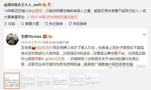 一网友扒出了王腾入职小米之前的言论,结果很意外,出现了一些力挺小米的死敌360、魅族等厂商,并看不起雷军的微博,并称:“14年都还在骂小米@雷军,只能说明雷总确实有容人之量,能容忍根本就看不起自己的人~成大事者雷军也”。