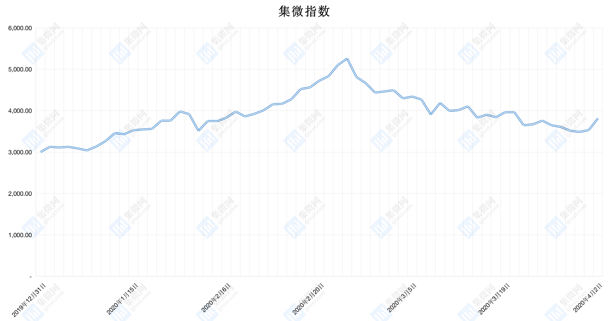 截至4月2日收盘,集微指数收盘点数为3818.06点,较前一日上涨285.59点,上涨8.08%。