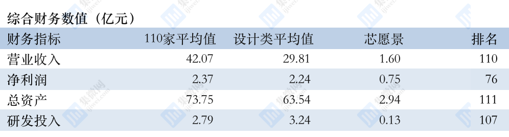 据招股说明书显示,芯愿景营业总收入为1.60亿元,净利润总额为0.75亿元,资产总额为2.94亿元,研发投入为0.13亿元,研发投入占营业收入比例为8.29%。四项综合指标在110家半导体公司中的排名分别为第110名、第76名、第111名和第107名。