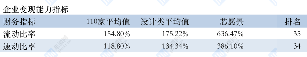 经计算,110家A股已上市半导体公司综合流动比率为154.80%,速动比率为118.80%,其中设计企业综合流动比率为175.22%,速动比率为134.34%。据wind数据,芯愿景流动比率为636.47%,速动比率为386.10%,芯愿景两项指标在110家公司中的排名分别为第35名和第34名。