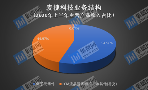 麦捷科技从事磁性元器件、射频元器件等新型电子元器件和LCM显示模组器件的研产销,主要产品包括电感、LTCC射频元器件、SAW射频元器件、电感变压器和LCM产品。产品主要应用于移动通讯、通信基站、消费电子、互联网应用产品等领域。其中,主营产品电子元器件、LCM液晶显示模组及其他(补充)的营收占比分别为54.96%、44.97%和0.07%。