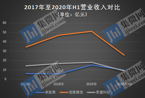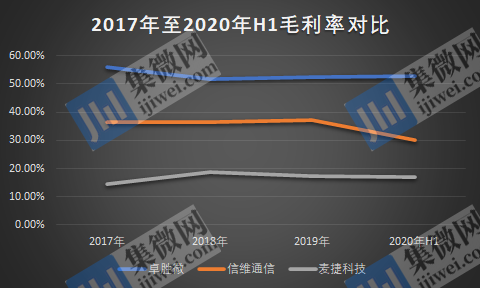 从营收规模来看,三家企业由大到小依次是信维通信、麦捷科技和卓胜微;从营收同比增幅来说,卓胜微在2019年及2020年上半年的营收增幅较快,分别为169.98%和93.64%。而信维通信和麦捷科技的营收规模较大,但增长性却略逊于前者。