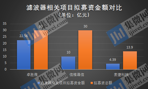 从拟募资金额来看,卓胜微、信维通信最新的募资金额均超过30亿元。在滤波器布局方面,卓胜微以22.56亿元投产滤波器和5G基站射频器件项目;信维通信则在滤波器、5G天线和无线充电等项目持续加码,分配到滤波器的募资金额约占总募资金额的三分之一,麦捷科技同样投入募资金额的三分之一进行滤波器扩产项目。