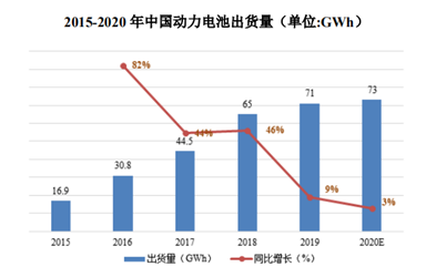 然而2019年下半年由于补贴退坡,新能源汽车全年产量有所下滑,与之对应的动力电池市场增速亦放缓,出货量为71GWh,同比增长仅9.2%。GGII预计,受疫情影响,2020年中国动力电池出货量为73GWh左右。