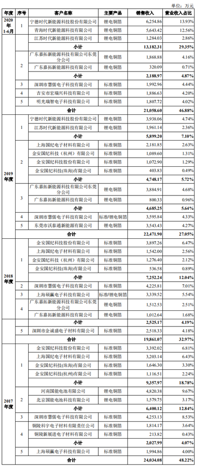 客户方面,近几年,其前五大客户的销售占比分别为48.22%、32.97%、27.05%和46.88%,占比略有波动,不过其客户结构较为稳定。其中,2019年前五大客户中新增宁德时代,并直接跃升至其第一大客户,今年上半年该客户营收占比进一步上升,提升至29.35%。