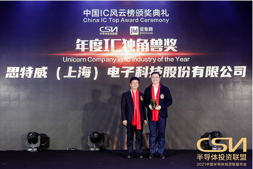 1月16日,2021半导体投资联盟年会暨中国IC风云榜颁奖典礼在北京举办。思特威(上海)电子科技股份有限公司(以下简称“思特威”)荣获2021中国IC风云榜“年度IC独角兽奖”。