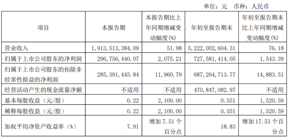 10月29日,士兰微发布三季报称,2021年7-9月,公司实现营业收入为19.14亿元,同比增长51.98%,归属于上市公司股东的净利润为2.97亿元,同比增长2075.21%。扣非净利润2.85亿元,同比增长11960.79%。