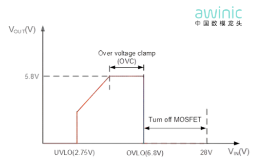 利用特色BCD工艺提供高达32V端口耐压,加上<1us的快速高压保护,叠加输出5.8V钳位保护,面对过压/浪涌等异常事件时,提供三重保护。