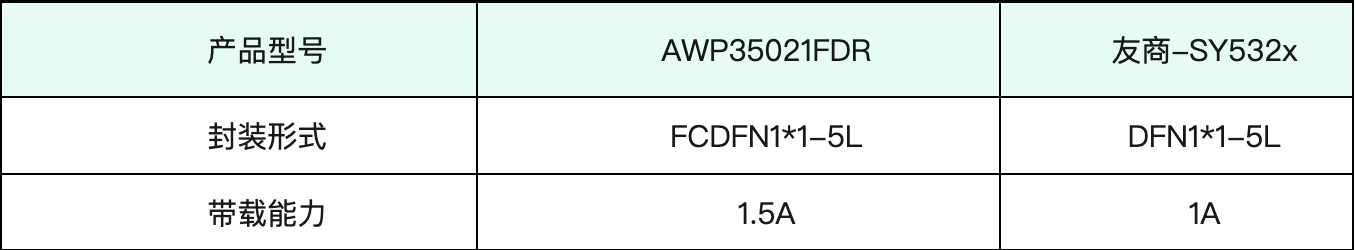 艾为电子通过封装差异化设计,不仅提供传统性价比高的DFN2*2封装(AW35018DNR),针对xWS耳机/智能戒指等应用,推出FCDFN1*1-4L极小封装产品(AWP35021FDR),但是还能提供1.5A连续过流能力。