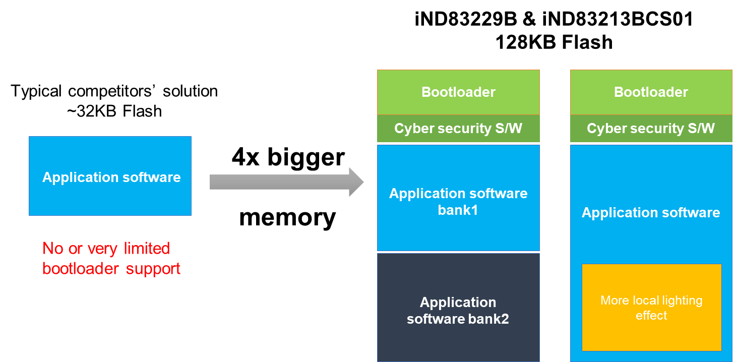 本次展会,英迪芯微同步推出三款内饰灯新品:全球首发128KB Flash氛围灯单芯片解决方案iND83229B&iND83213B、全球首发高亮度氛围灯单芯片解决方案iND23224、增强ESD/EMC氛围灯解决方案iND83215B。这些新品均源于客户的精准需求,针对性解决了行业痛点:128KB大容量Flash支持更复杂的灯光动画与安全OTA升级,高亮度方案满足大功率照明需求,增强型ESD/EMC设计适配严苛的内饰电磁环境。