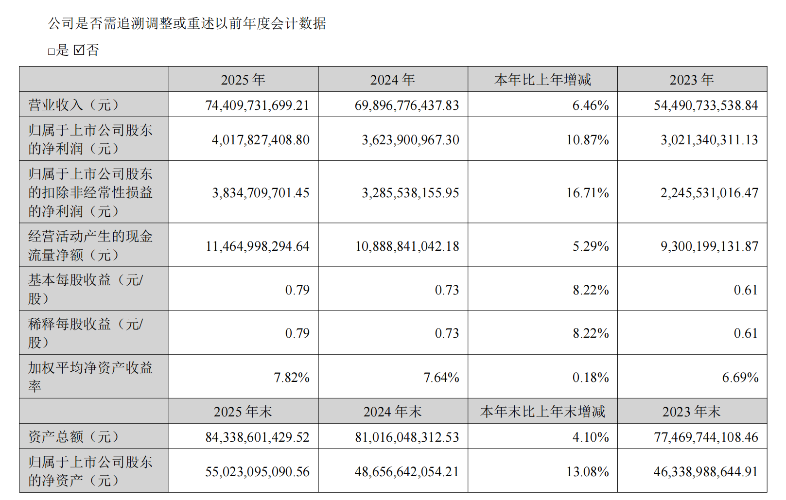 3月31日,蓝思科技发布2025年年度报告,公司全年实现营业收入744.1亿元,同比增长6.46%;归属于上市公司股东的净利润40.18亿元,同比增长10.87%,扣非后净利润38.35亿元,同比增长16.71%,基本每股收益0.79元。