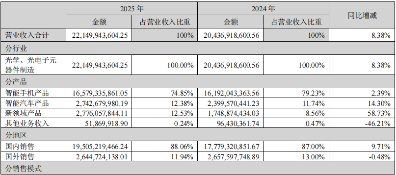 欧菲光2025年实现营收221.5亿元,同比增长8.38%