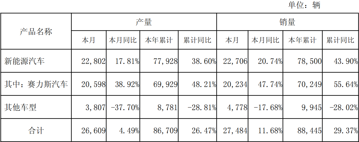 来源:爱集微 #赛力斯# #产销报# #新能源#