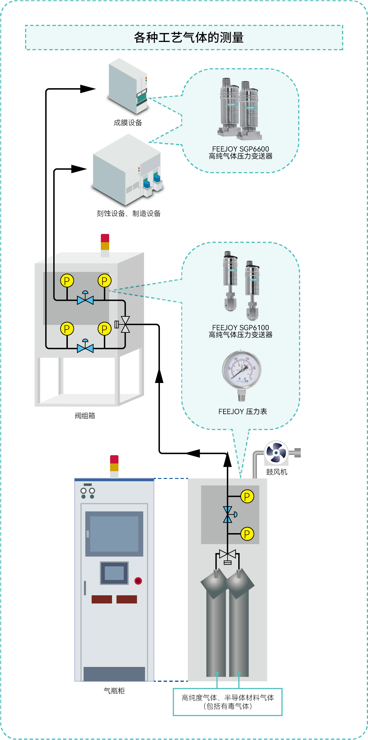 飞卓SGP6100并非传统传感器的简单升级,而是从技术本源出发,专为应对半导体高纯气体、腐蚀性介质与宽温区工况设计的国产高性能产品。适用于硅片制造、氧化、光刻、气体沉积、干法刻蚀、离子注入等关键制程环节,是保障工艺重复性、提升设备综合效率的核心基础部件。