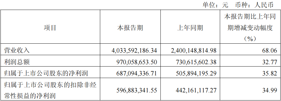 剔除股份支付影响后,公司一季度归属于上市公司股东的净利润为9.23亿元,同比增长74.86%;扣非后净利润为8.33亿元,同比增长79.44%。