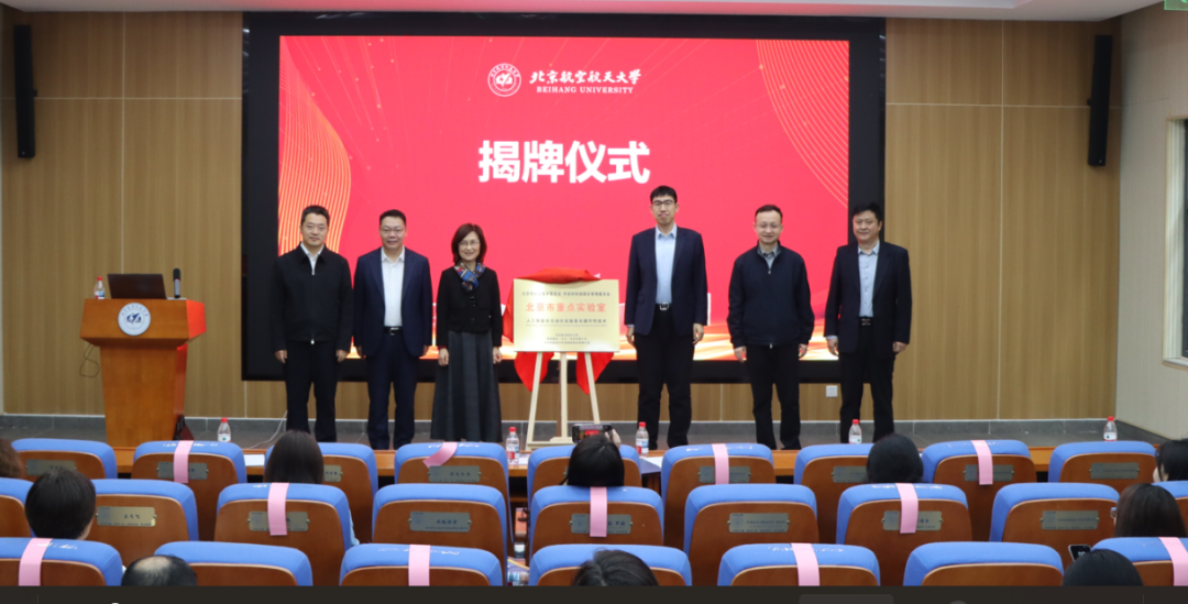 仪式现场,学术委员会主任姜杰院士与实验室主任赵巍胜副校长共同为实验室揭牌,北京市科委副主任张金辉、海淀区常务副区长马光耀、清华大学副校长白本锋、北航科研院副院长刘智良等领导共同见证这一重要时刻。