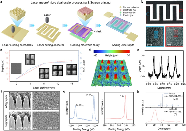 图2. 三维互锁结构平面微型超级电容器的制备与表征