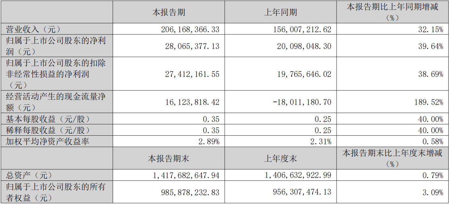 报告期内,公司实现归属于上市公司股东的扣除非经常性损益的净利润2741.22万元,同比增长38.69%。公司加权平均净资产收益率提升至2.89%,较上年同期的2.31%增加0.58个百分点。
