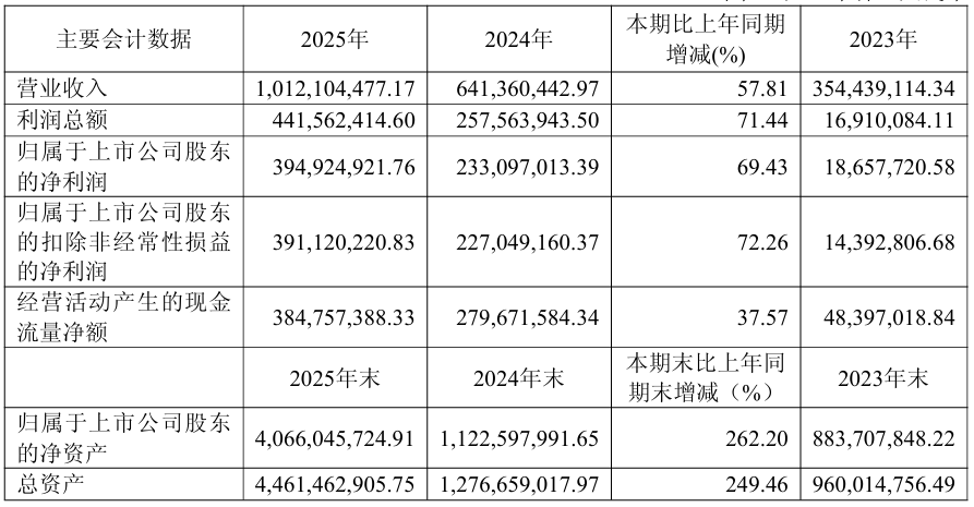 4月26日,强一半导体(苏州)股份有限公司正式发布2025年年度报告。年报显示,2025年强一股份实现营业总收入10.12亿元,同比增长57.81%;归属于上市公司股东的净利润3.95亿元,同比增长69.43%;归属于上市公司股东的扣除非经常性损益的净利润3.91亿元,同比增长72.26%;经营活动产生的现金流量净额3.85亿元,同比增长37.57%。
