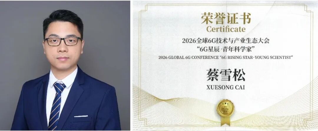 北京大学电子学院蔡雪松获评2026全球6G技术与产业生态大会“6G星辰青年科学家”荣誉称号
