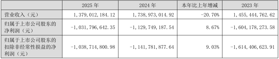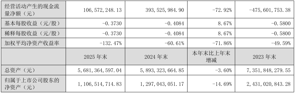 4月28日,华映科技(集团)股份有限公司正式发布2025年年度报告。年报显示,2025年华映科技实现营业总收入13.79亿元,同比下降20.7%;归属于上市公司股东的净利润-10.32亿元,同比减亏8.67%;归属于上市公司股东的扣除非经常性损益的净利润-10.39亿元;经营活动产生的现金流量净额1.07亿元,同比下降72.92%。