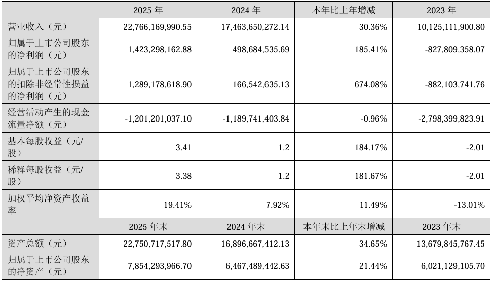 4月28日,深圳市江波龙电子股份有限公司正式发布2025年年度报告。年报显示,2025年江波龙实现营业总收入227.66亿元,同比增长30.36%;归属于上市公司股东的净利润14.23亿元,同比增长185.41%;归属于上市公司股东的扣除非经常性损益的净利润12.89亿元,同比增长674.08%。