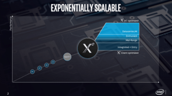 在去年12月发布的这个大胆的全新工程愿景中,英特尔Xe架构是一个关键元素。英特尔Xe架构涉及多个计算和图形细分市场,能够满足广泛的市场和工作负载需求,并且广泛适用于从主流笔记本电脑和发烧友级游戏系统到数据中心的强大计算解决方案。