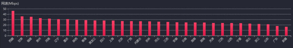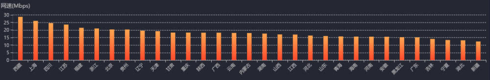 中国联通实测4G下载网速最快的是西藏,达到了46.3Mbps,甘肃和福建紧随其后,对应的网速分别是36.04Mbps和35.2Mbps。上传网速最快的是西藏,达到了28.71Mbps,上海和四川分别是26.0Mbps和24.56Mbps。